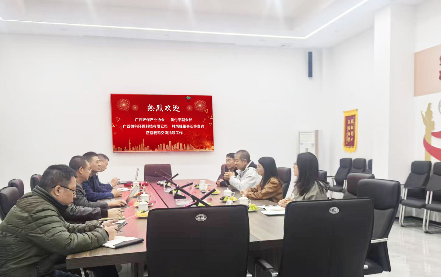 ?? ? ?2025年12月8日廣西環(huán)保產(chǎn)業(yè)協(xié)會黃付平副會長、廣西微科環(huán)??萍加邢薰玖直宥麻L等貴賓一行,專程蒞臨浙江川寧環(huán)保科技有限公司交流指導(dǎo)。? ? ? ?