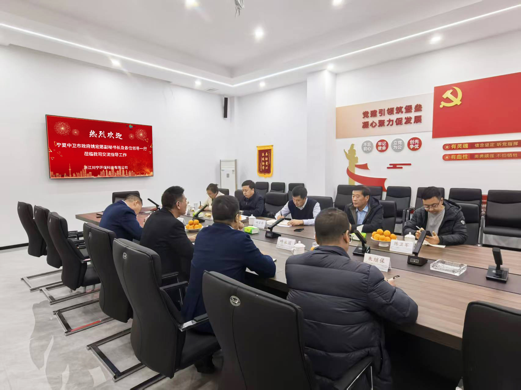 2025年12月10日,由寧夏中衛(wèi)市政府副秘書長姚宏愿帶隊(duì),工業(yè)園區(qū)黨工委委員李廣強(qiáng),市生態(tài)環(huán)境局副局長李玉明,市財政局調(diào)研員李衍萍,工業(yè)園區(qū)管委會財政金融局局長陳衛(wèi)軍,工業(yè)園區(qū)管委會綜合服務(wù)局干部馬紅霞等組成的政府考察團(tuán),專程蒞臨我司進(jìn)行考察調(diào)研。此行旨在深入了解我司在環(huán)??萍碱I(lǐng)域的創(chuàng)新成果與運(yùn)營模式,共商合作大計(jì),共繪發(fā)展藍(lán)圖。我司總經(jīng)理邵永富攜核心管理團(tuán)隊(duì)熱情接待,雙方舉行了座談交流會。